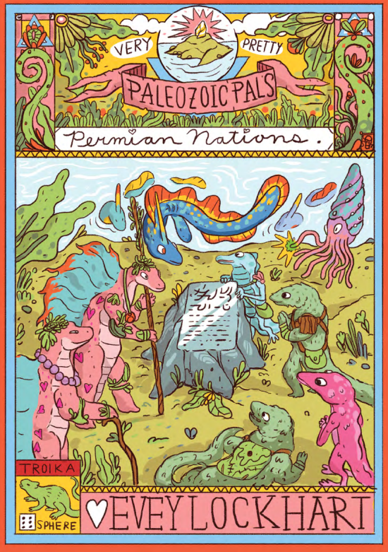 The base core book had me sold, but the splatbooks are what puts this game over the end. Yes, they have their classic (fun!) fantasy tropes: Acid Death Fantasy by Luke Gearing is Dune but Troika-fied, but there is plenty I have never seen. Very Pretty Paleozoic Pals by Evey Lockhart, you get to play as adorable sea dinos that inexplicably coexist with humans. And if you are still not convinced, Daniel Sell’s Get It At Sutlers, lets you get hired at a department store. A DEPARTMENT STORE.