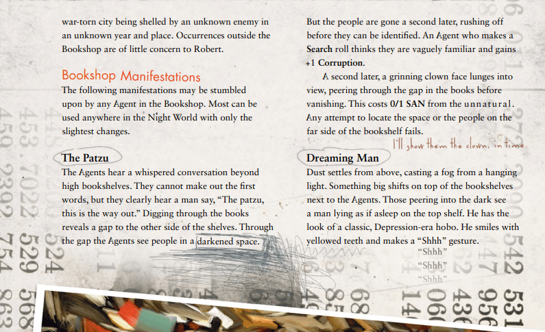 Now, being given this much information would normally drive me crazy, I tend to be a bullet points and pretty art kind of guy, but the book itself is almost an ARG for the handlers. There are secrets and puzzles hidden in the text, scribbles in the margins with different authors leaving clues the players will never see. It would absolutely have been worth the read even if I never played the game. The layout of this book is a masterwork, almost too good. By the end of book you may go mad along with your players. I never slept well after a day of session prep. Even as I write this, I jump at sounds outside my office door.